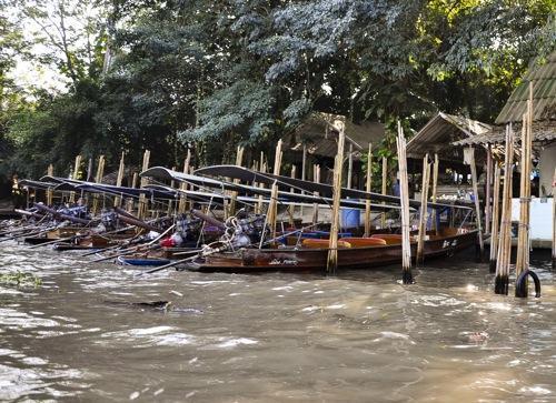 Masina ne-a lasat la un loc de imbarcare. Ne-am urcat pe un long boat si am pornit pe „canalul – autostrada” directia floating market. De cate ori trecea in viteza o alta barca pe langa noi mi se facea inima cat un purice, imaginandu-mi cum ma stropeste apa aceea verde, namoloasa… Surpriza: nu a fost cazul. Cum or fi construite aceste barci de nici o picatura de apa nu ajunge pe calatori?