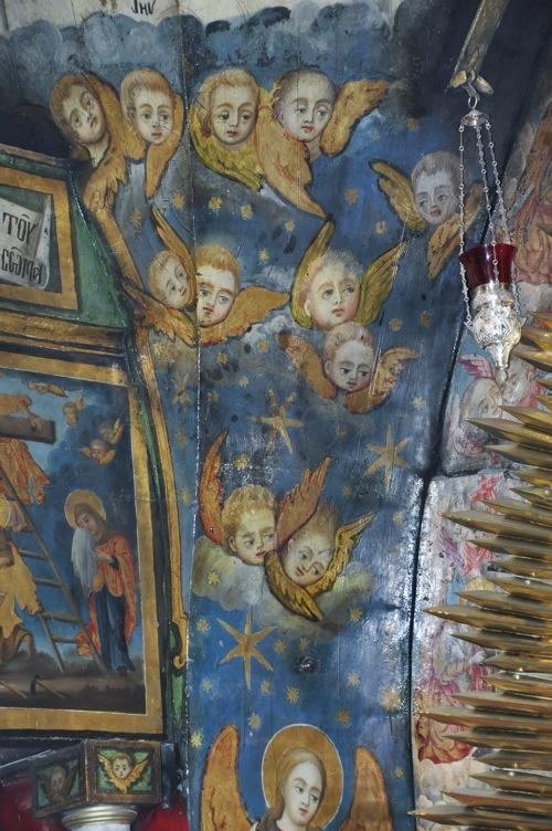 La intrarea in biserica se afla Piatra Ungerii, piatra pe care a fost uns Iisus dupa ce a fost dat jos de pe cruce.