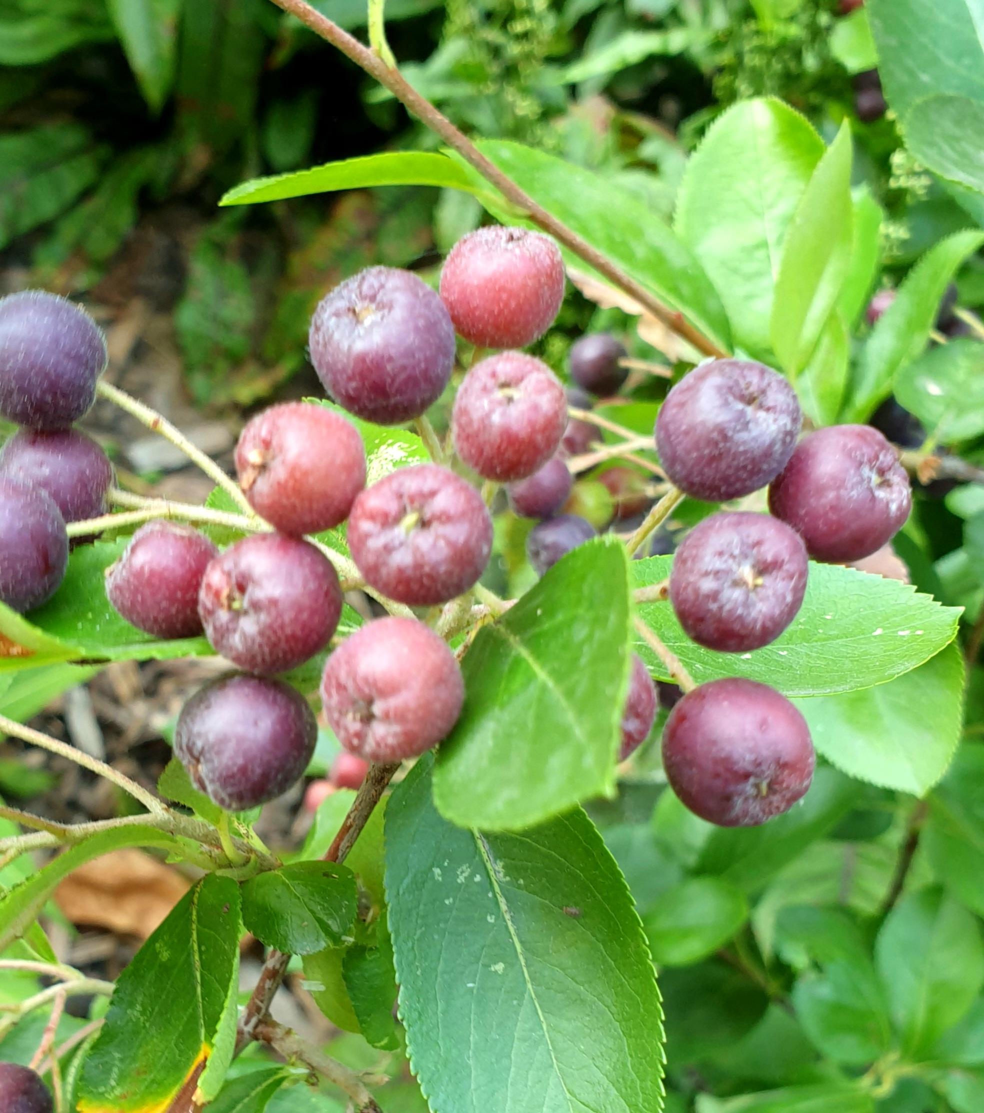 Fructele de aronia (scorus negru sau chokeberries) sunt micutele supereroine din gradina mea. Aceste fructe rotunde, mov sau negre, cu un gust amarui – acrisor, au cel mai puternic efect antioxidat dintre toate fructele de padure (de 15 ori mai mulți antioxidanți decât afinele sau merișorul). Cu un continut de zahar foarte scazut, abunda in Vitaminele C, E, A, K, precum si vitamine mai rare – Q si P, quercitina, minerale (Magneziu, Mangan, Potasiu, Fier, Calciu, Zinc), antocianine si proantocianide – antioxidanti foarte puternici gasiti in plante.
