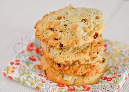 Coacem cookies in cuptor aprox 12-15 minute, pana devin aurii, dar inca moi la interior (coacerea va continua cat se racesc in tava). Daca asteptam sa se intareasca in cuptor, vor deveni pietroi.
