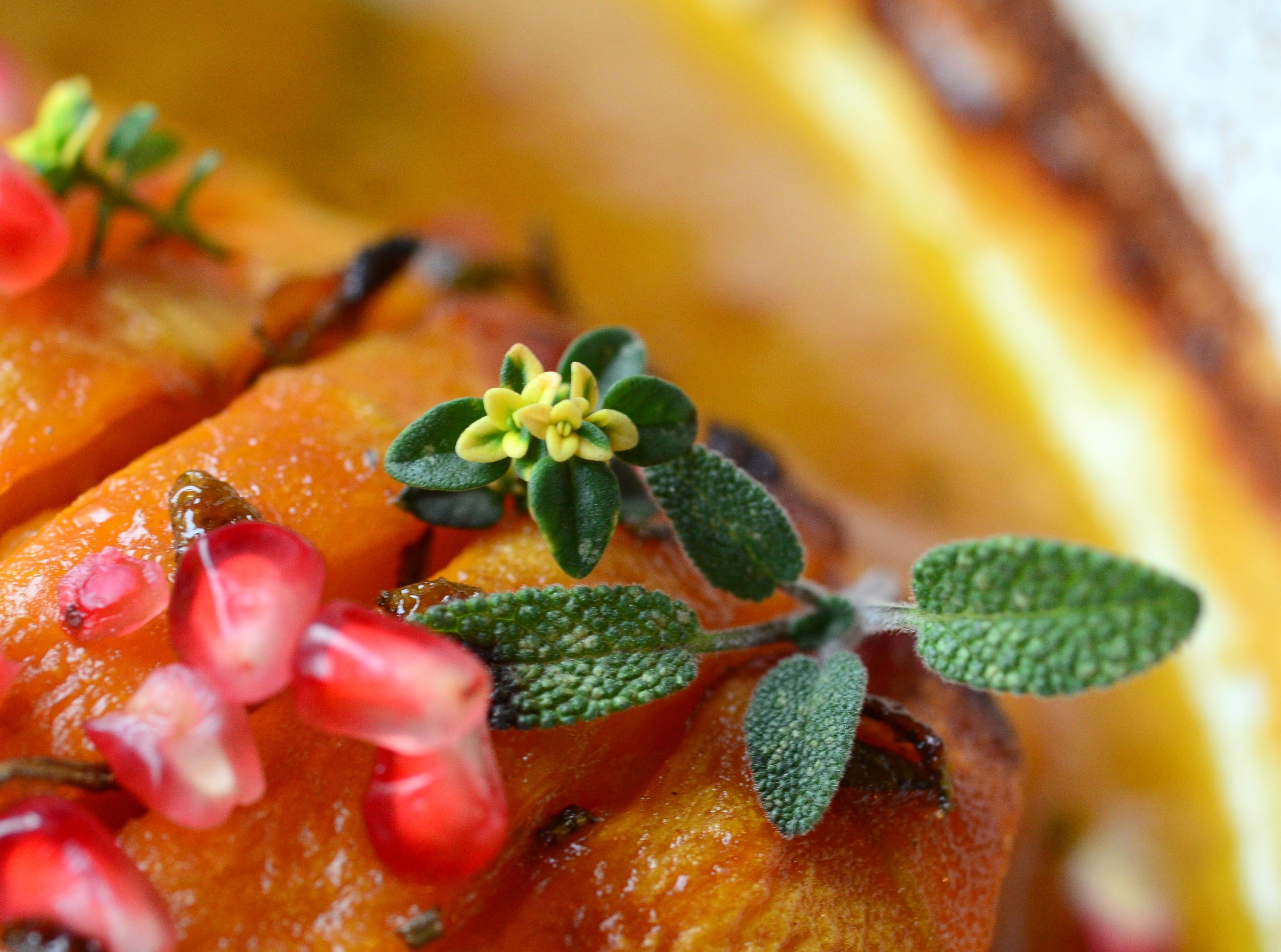 Dovleac copt, glazurat cu miere, mustar de Dijon si plante aromatice